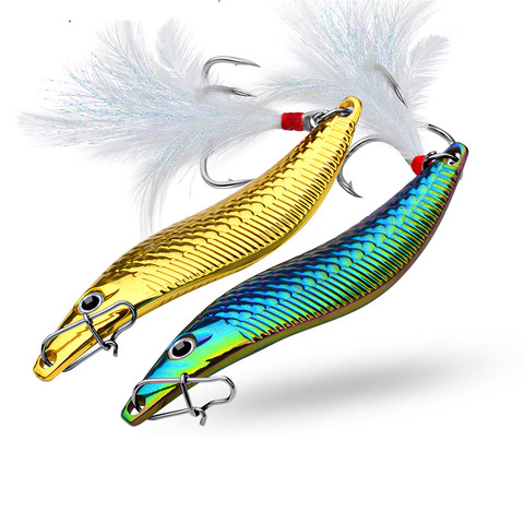 เหยื่อล่อแบบสั่นยาวเหยื่อล่อโลหะหลากสีเหยื่อช้อนโลหะพร้อมขนนกสำหรับจระเข้ปลาแมนดารินปลากะพงดำ
